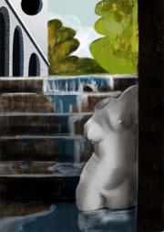 Una canción de Bebe tiene una frase preciosa: "este cuerpecito mío, que se ha transformado en rio" la verdad es que siempre que lo escucho me venía esta imagen que aunque nuestra esos elementos poco o nada tiene que ver con la canción. Asi que el otro día, en el trabajo la escuché de nuevo y pensé en sacarme la espinita del tema, con este resultado. sigo experimentado e intentando sacar conclusiones y resultados en la ilustración, aunque por lo que veo me queda mucho camino por delante.